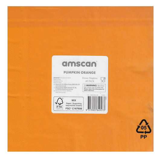 PUMPKIN ORANGE DINNER NAPKINS / SERVIETTES (PACK OF 40)