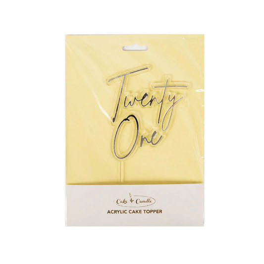 TWENTY ONE SILVER & CLEAR ACRYLIC CAKE TOPPER