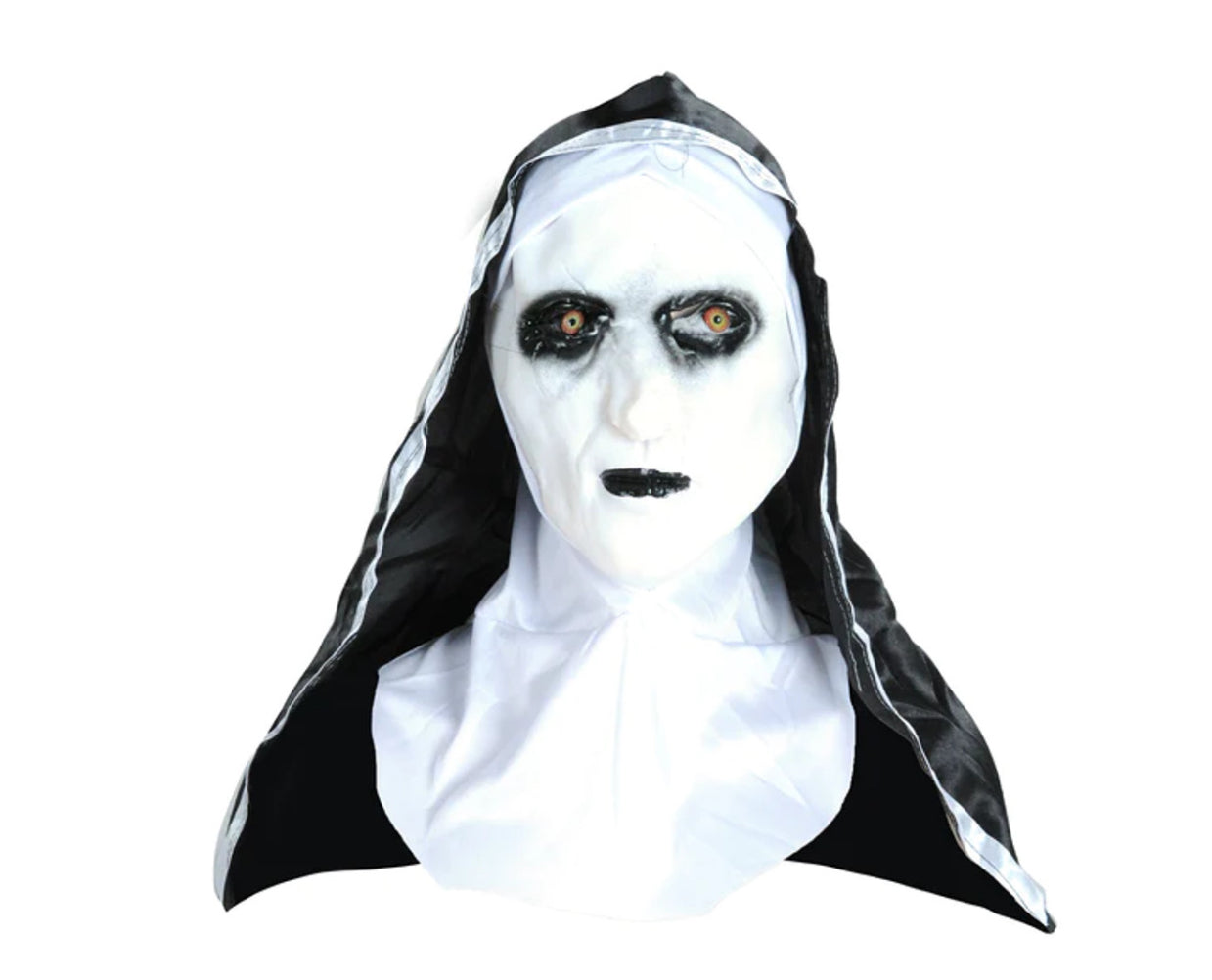 Product details: Unleash pure terror with our Creepy Nun Latex Mask! This spine-chilling mask is a perfect choice for Halloween or any occasion when you want to send shivers down spines. Prepare to embrace the darkness and become a source of nightmares with our Creepy Nun Latex Mask. It's a truly terrifying accessory that will make you the center of attention at any spooky gathering. Get ready to haunt the night with this mask.