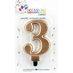 METALLIC ROSE GOLD NUMBER 3 CANDLE